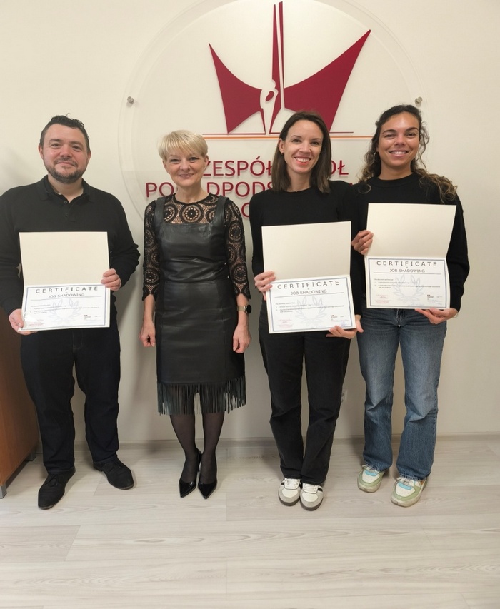 W dniach od 8 do 12 grudnia 2025 r., Zespół Szkół Ponadpodstawowych w Chojnie, gościł troje nauczycieli ze szkoły gastronomicznej Lycee professionnel Val de Bievre w Paryżu, którzy uczestniczyli w pięciodniowej mobilności typu „job shadowing”, realizowanej w ramach programu Erasmus+. Celem wizyty było poszerzenie kompetencji zawodowych oraz wymiana doświadczeń w zakresie kształcenia gastronomicznego. Pierwszego dnia pobytu, odbyło się oficjalne powitanie gości przez Dyrektora Szkoły Panią Adrianę Salamończyk. Następnie zorganizowano zwiedzanie szkoły, obejmujące prezentację pracowni dydaktycznych, pracowni szkolnych, w tym pracowni gastronomicznej. Delegacja miała również okazję zapoznać się ze strukturą i organizacją polskiego systemu edukacji, poprzez prezentację przygotowaną i przedstawioną przez uczniów ZSP. Następnie goście wzięli udział w obserwacji lekcji języka angielskiego zawodowego w obszarze gastronomii, którą poprowadziła Pani Kamila Pańczuk. Poniedziałkowe popołudnie, goście wraz z dwoma nauczycielami ZSP, spędzili na zwiedzaniu Chojny oraz jej najcenniejszych zabytków, poznając historię miasta i jego wyjątkowych walorów kulturowych.