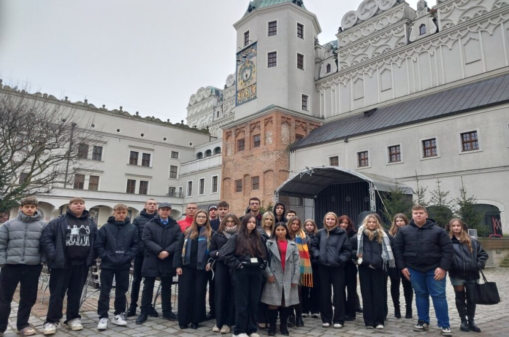 Dzięki temu, uczniowie mają możliwość uczestniczyć m.in. w spektaklach teatralnych, przedstawieniach operowych i operetkowych, koncertach, wystawach, a także zorganizowanych wyjściach do instytucji naukowych oraz centrów edukacji, połączonych z warsztatami edukacyjno-kulturalnymi. Celem przedsięwzięcia jest uatrakcyjnienie procesu edukacyjnego dzieci i młodzieży, poprzez umożliwienie im aktywnego uczestnictwa w kulturze, poznawanie miejsc pamięci i dziedzictwa narodowego oraz osiągnięć nauki, a także rozwijanie kompetencji społecznych, kulturowych i twórczych. Przedsięwzięcie wspiera realizację podstawy programowej kształcenia ogólnego oraz poszerza ofertę edukacyjną placówek oświatowych, umożliwiając uczniom zdobywanie wiedzy w sposób atrakcyjny i praktyczny. Dodatkowo, celem przedsięwzięcia jest rozwijanie ciekawości świata i wrażliwości kulturowej oraz zapewnienie szerszego dostępu do kultury, niezależnie od miejsca zamieszkania uczestników. W naszej szkole, na udział w przedsięwzięciu zasłużyła klasa 3ac LO, której uczniowie mają najwyższą frekwencję spośród wszystkich klas naszego Liceum. Dzięki temu, 17 grudnia udali się oni, wraz z wychowawcą na jednodniową wycieczkę do Szczecina. Po przyjeździe do stolicy województwa, uczniowie przemieścili się na Zamek Książąt Pomorskich, gdzie na dziedzińcu zamkowym wysłuchali krótkiego rysu historycznego, dotyczącego obiektu i jego losów. Następnie udali się w okolice późnogotyckiej kamienicy bankierskiego rodu Loitzlów, jednego z najcenniejszych zabytków architektonicznych miasta. Kolejnym punktem na trasie, była brama królewska, czyli jedna z kilku bram wiodących do miasta, powstała w XVIII wieku.