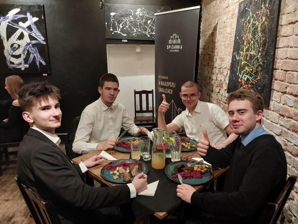 Obok bramy znajduje się kolejne miejsce związane z historią miasta, to Plac Solidarności, którego nazwa upamiętnia tragiczne wydarzenia grudnia 1970 r. Kolejnym punktem wycieczki była wizyta na jarmarku bożonarodzeniowym, gdzie można było kupić różne pamiątki, świąteczne ozdoby oraz produkty kuchni regionalnej. Po tym spacerze przyszedł czas na posiłek, który został zarezerwowany w restauracji o nazwie Spiżarnia Szczecińska. Na uczniów czekała prawdziwa kulinarna uczta, w postaci przepysznej kaczki lub kurczaka. Oba dania przygotowane zostały w bardziej nowoczesnej, nietypowej odsłonie. Następnie przyszedł czas na deser, gdzie do wyboru uczniowie mieli fondant czekoladowy z lodami lub bezę z kremem i owocami. Po uczcie dla podniebienia, nadszedł czas na ucztę dla duszy, czyli wizytę w Teatrze Polskim. Tego wieczora, na deskach teatru grana była ciesząca się dużym zainteresowaniem komedia pt. „Kolacja dla głupca”. To sztuka, której głównym bohaterem jest Pierre Brochant, bogaty wydawca i człowiek sukcesu. We wtorkowe wieczory, ze swoimi kolegami urządza tytułowe „kolacje dla głupca” – konkursy, na które każdy z nich musi przyprowadzić wyjątkowego nieudacznika.