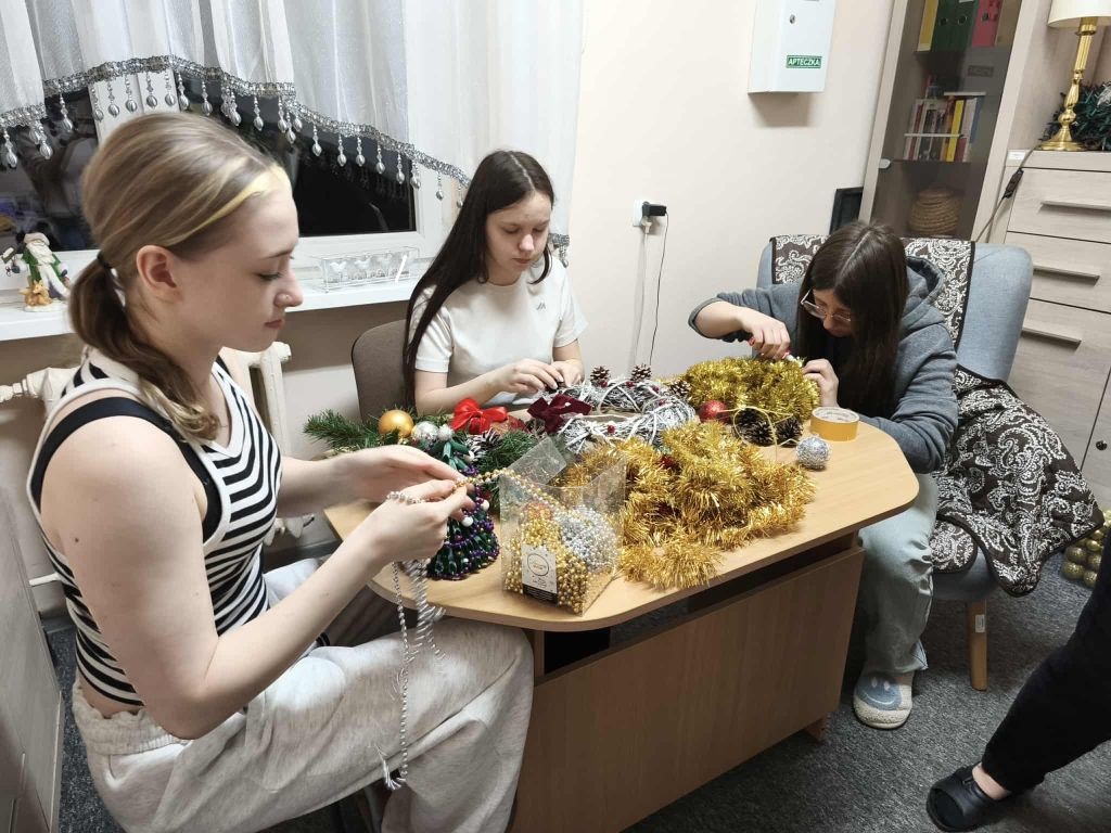 Podczas zajęć, młodzież wykonywała różnorodne dekoracje świąteczne, wykorzystując materiały plastyczne i własną kreatywność. Wspólna praca sprzyjała integracji, współpracy oraz wprowadzała wszystkich w radosny i świąteczny nastrój.