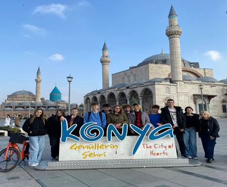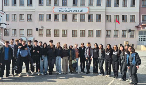 W dniach 23–29 listopada 2025 r. grupa uczniów naszej szkoły, wraz z opiekunami, uczestniczyła w mobilności w Konyi w Turcji. Wyjazd odbył się w ramach projektu „Moje kompetencje, moja przyszłość”, program Erasmus+. Celem wyjazdu było poszerzenie wiedzy z zakresu ekologii, wzbudzanie zaangażowania młodzieży w procesy demokratyczne, rozwijanie kompetencji kluczowych i kompetencji miękkich, kształtowanie postawy otwartości wśród uczestników mobilności. W niedzielę, 23 listopada, o wczesnych godzinach porannych stawiliśmy się na zbiórce. Pełni ekscytacji wyruszyliśmy autokarem do Berlina, skąd czekał nas lot do Stambułu, a następnie przesiadka do Konyi. Podróż przebiegła sprawnie, a mimo zmęczenia wszyscy byli ciekawi, co przyniesie nadchodzący tydzień. W poniedziałek udaliśmy się do szkoły partnerskiej Selçuklu Fen Lisesi Sokak. Zostaliśmy bardzo serdecznie przyjęci przez tureckich uczniów i nauczycieli. Na początku przedstawiliśmy prezentację dotyczącą naszej szkoły, w której zawarliśmy najważniejsze informacje o naszej placówce, kierunkach kształcenia oraz życiu szkoły.