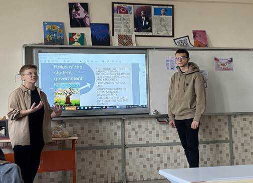 W środę uczniowie Zespołu Szkół Ponadpodstawowych w Chojnie przedstawili przygotowane wcześniej prezentacje dotyczące różnych zagadnień związanych z ekologią, procesami demokratycznymi oraz z życiem społecznym i szkolnym w Polsce. Pierwsza prezentacja dotyczyła systemu demokracji w Polsce, kolejna poruszała temat ekologii i działań podejmowanych na rzecz ochrony środowiska, następna funkcjonowania samorządu uczniowskiego. Przeprowadziliśmy ankietę na temat zaangażowania młodych ludzi w procesy demokratyczne, a uczniowie ze szkoły przyjmującej przeprowadzili i omówili ankietę na temat ekologii i inicjatyw prośrodowiskowych.