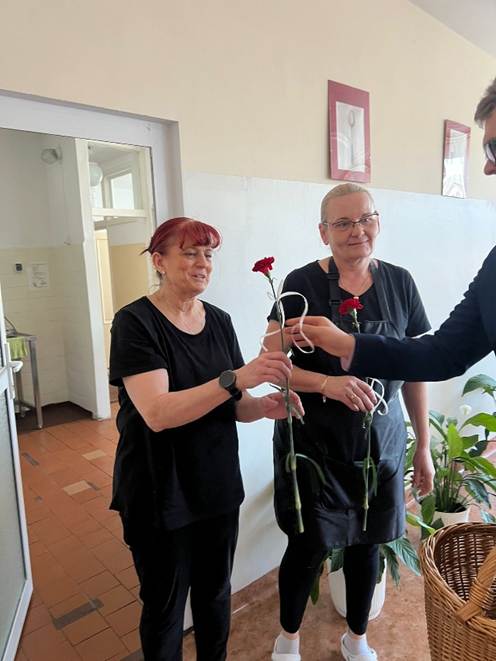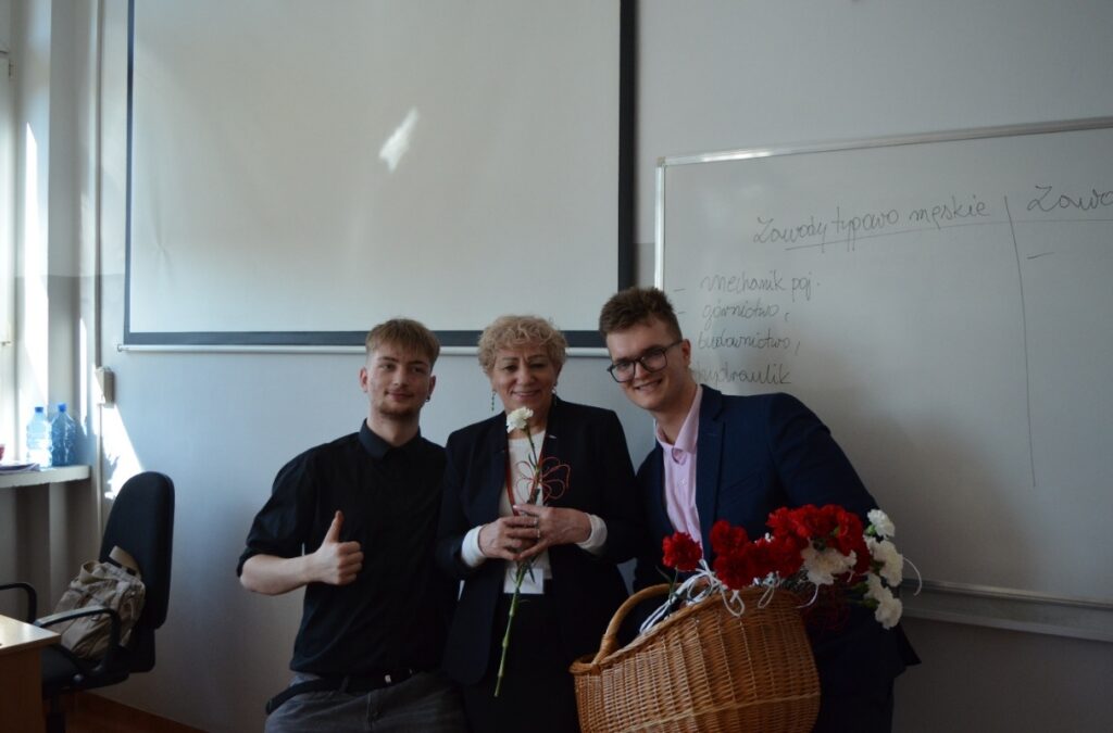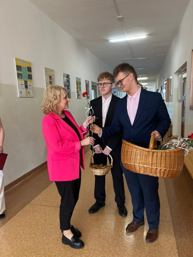 Panowie z SU wręczali nauczycielkom oraz pracownicom szkoły symboliczne kwiaty, jako wyraz wdzięczności i pamięci. Dziewczęta mogły natomiast liczyć na słodki poczęstunek w postaci cukierków.