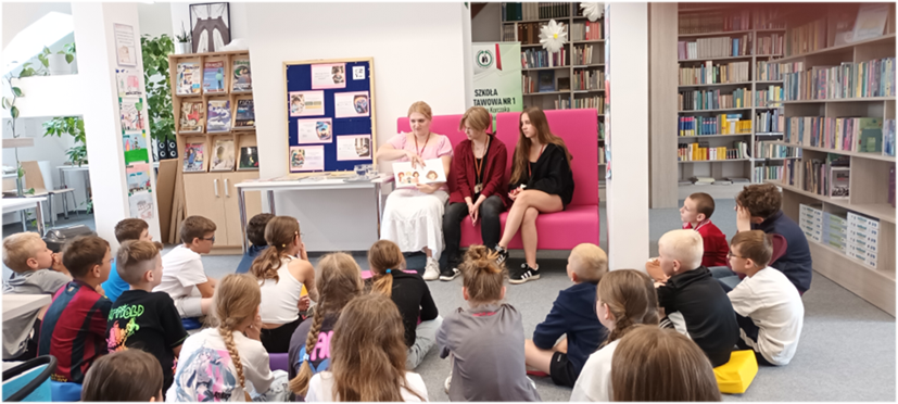 18 czerwca 2025 r., w ramach kampanii Tydzień Czytania Dzieciom, wzięliśmy udział w akcji czytelniczej pod hasłem „Czytanie łączy pokolenia”. Zostaliśmy zaproszeni do Szkoły Podstawowej w Chojnie, gdzie mieliśmy przyjemność czytać książki młodszym uczniom.