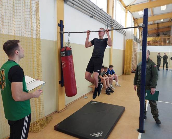 Kadeci klasy trzeciej rozpoczęli tego dnia zajęcia od treningu do sprawdzianu kwalifikacyjnego sprawności fizycznej, obowiązującego w SZRP. Sprawdzian polegał na wykonaniu ćwiczeń przygotowujących do wykonania norm przewidzianych podczas sprawdzianu kwalifikacyjnego, obowiązującego w SZRP. Zajęcia przeprowadzone zostały w hali sportowej i poprzedzone były rozgrzewką.