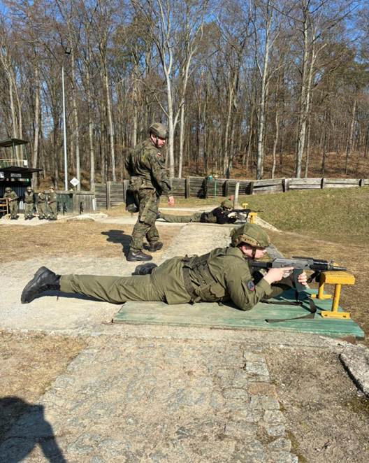 Kadeci ćwiczyli także umiejętność ładowania i rozładowania magazynków. Drugim realizowanym w tym dniu tematem, było przyjmowanie postaw strzeleckich i łącznych czynności do strzelania. Całość zajęć realizowana była w kompleksie Puszczy Bukowej, pod okiem doświadczonych instruktorów. Uczniowie na teren strzelnicy przemieszczali się marszem ubezpieczonym, podczas którego ćwiczono dodatkowo reakcję na zagrożenia oraz transport i osłonę rannego.